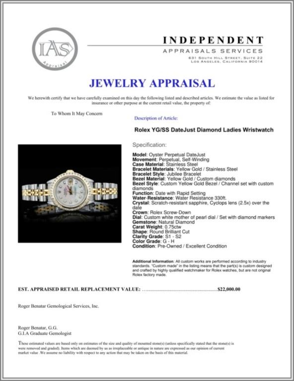Regarding Appraised Jewelry and Loose Stones - Auctionfarm sends them out to a third party for Retail Replacement Value Appraisals, which are the most common. These types of evaluations are written for insurance needs. This would be the cost to replace the jewelry with an item of equal quality and kind, considered to be the current market price or the replacement value. This type of appraisal is done to protect you in the event of damage or loss of a valuable item. Our appraisals are conducted by independent 3rd Party appraisal firms that utilizes Certified GIA Gemologist. Appraisals should be used for verification of gemstone and/or metal weight, size, and grade only, not actual value. Appraisal value should be considered for insurance purposes only, not actual value, as price varies greatly from retail locations thru out the world. Items should not be purchased with the expectation to resell for appraisal price, or for profit.