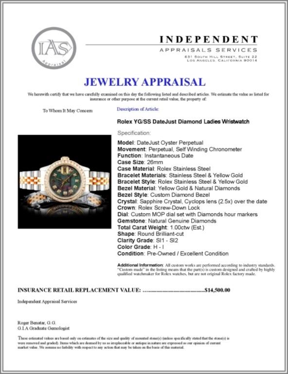 Regarding Appraised Jewelry and Loose Stones - Auctionfarm sends them out to a third party for Retail Replacement Value Appraisals, which are the most common. These types of evaluations are written for insurance needs. This would be the cost to replace the jewelry with an item of equal quality and kind, considered to be the current market price or the replacement value. This type of appraisal is done to protect you in the event of damage or loss of a valuable item. Our appraisals are conducted by independent 3rd Party appraisal firms that utilizes Certified GIA Gemologist. Appraisals should be used for verification of gemstone and/or metal weight, size, and grade only, not actual value. Appraisal value should be considered for insurance purposes only, not actual value, as price varies greatly from retail locations thru out the world. Items should not be purchased with the expectation to resell for appraisal price, or for profit.