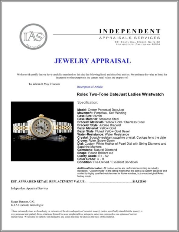 Regarding Appraised Jewelry and Loose Stones - Auctionfarm sends them out to a third party for Retail Replacement Value Appraisals, which are the most common. These types of evaluations are written for insurance needs. This would be the cost to replace the jewelry with an item of equal quality and kind, considered to be the current market price or the replacement value. This type of appraisal is done to protect you in the event of damage or loss of a valuable item. Our appraisals are conducted by independent 3rd Party appraisal firms that utilizes Certified GIA Gemologist. Appraisals should be used for verification of gemstone and/or metal weight, size, and grade only, not actual value. Appraisal value should be considered for insurance purposes only, not actual value, as price varies greatly from retail locations thru out the world. Items should not be purchased with the expectation to resell for appraisal price, or for profit.