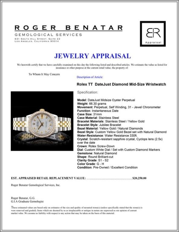 Model: DateJust Midsize Oyster Perpetual