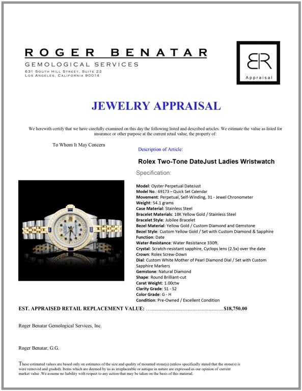 Dial: Custom White Mother of Pearl Diamond Dial / Set with Custom Sapphire Markers