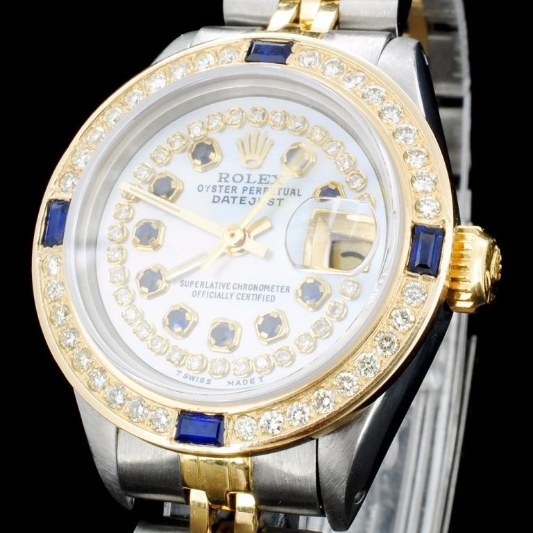 Dial: Custom White Mother of Pearl Diamond Dial / Set with Custom Sapphire Markers