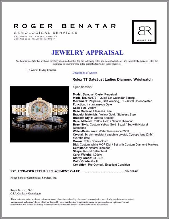 Dial: Custom White MOP Dial / Set with Custom Diamond Markers