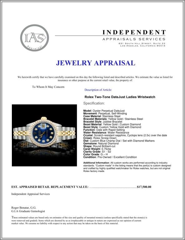 Dial: Custom Blue Champ Dial / Set with Diamond Markers