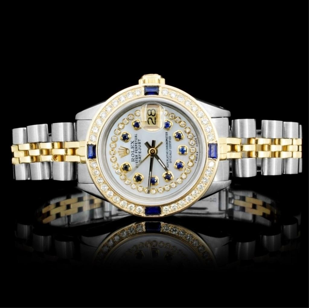 Dial: Custom White Mother of Pearl Diamond Dial with Sapphire Markers