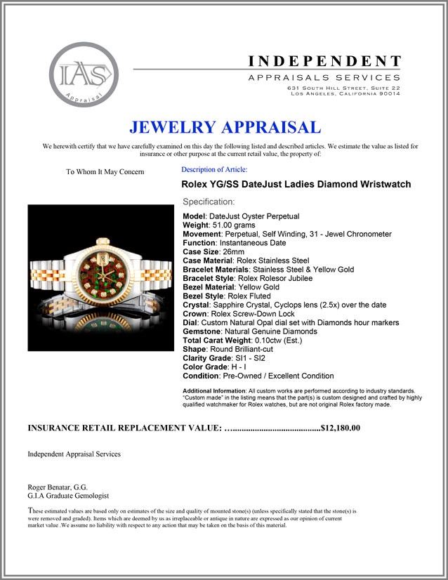 Dial: Custom Natural Opal dial set with Diamonds hour markers