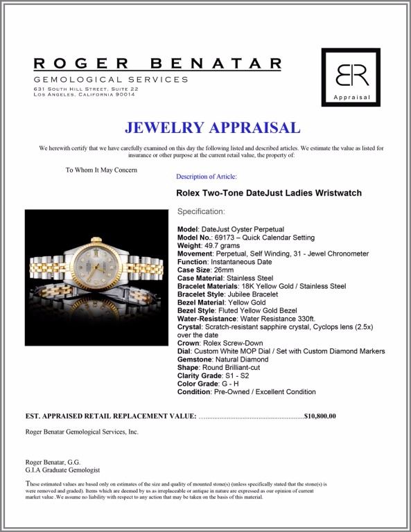 Dial: Custom White MOP Dial / Set with Custom Diamond Markers