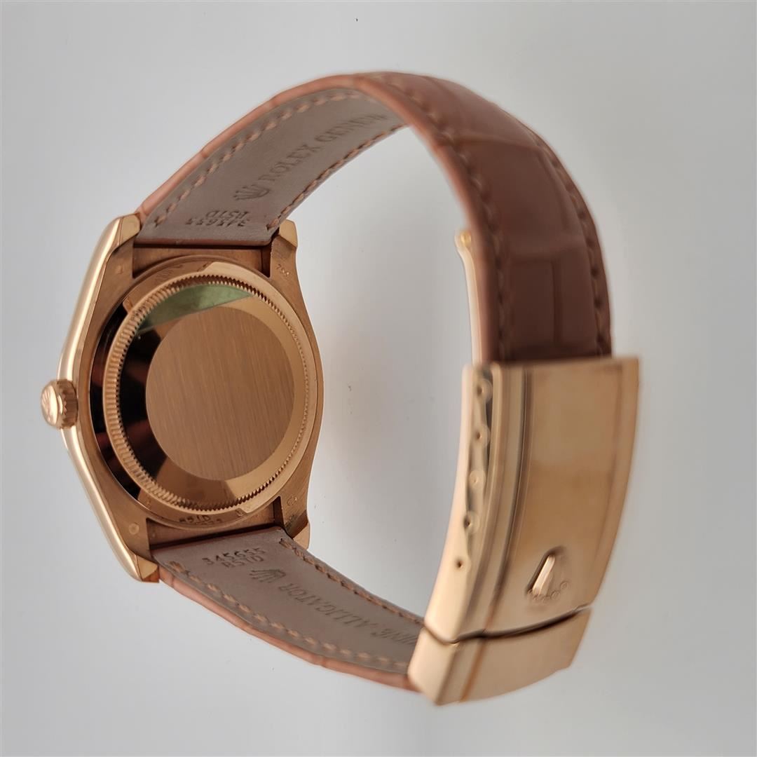 One Rolex Rose Gold Genuine Alligator Leather Wristwatch.