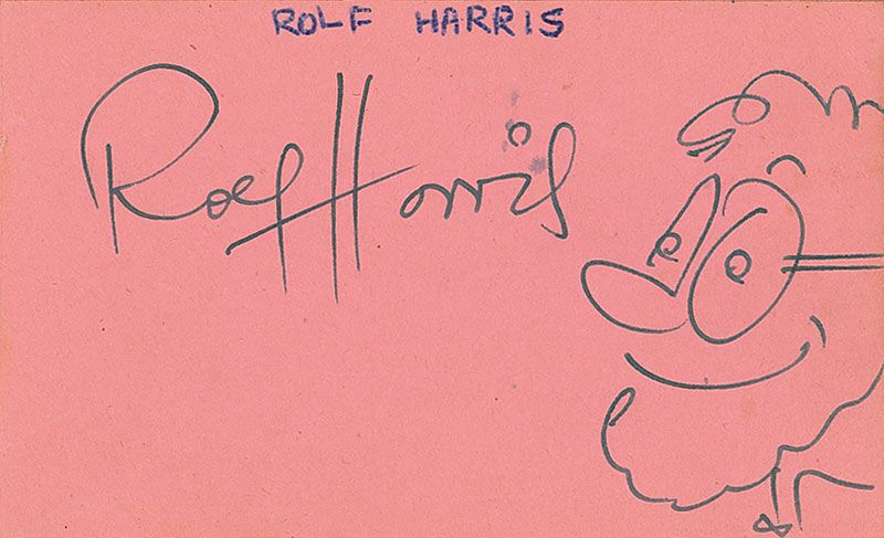 Singer-songwriter best known for the song ‘Tie Me Kangaroo Down, Sport.’ Original signed ink self-portrait on a light pink 4.75 x 3.75 album page, with a collector’s notation along the top. In fine condition, with a few small stray ink spots. Accompanied by a certificate of authenticity from Tracks.