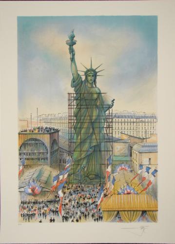 Rolf Rafflewski created this impressive print entitled "The Inauguration de la Statue de la Libert&ecute;" in 1986 on the occasion of her 100th anniversary:
