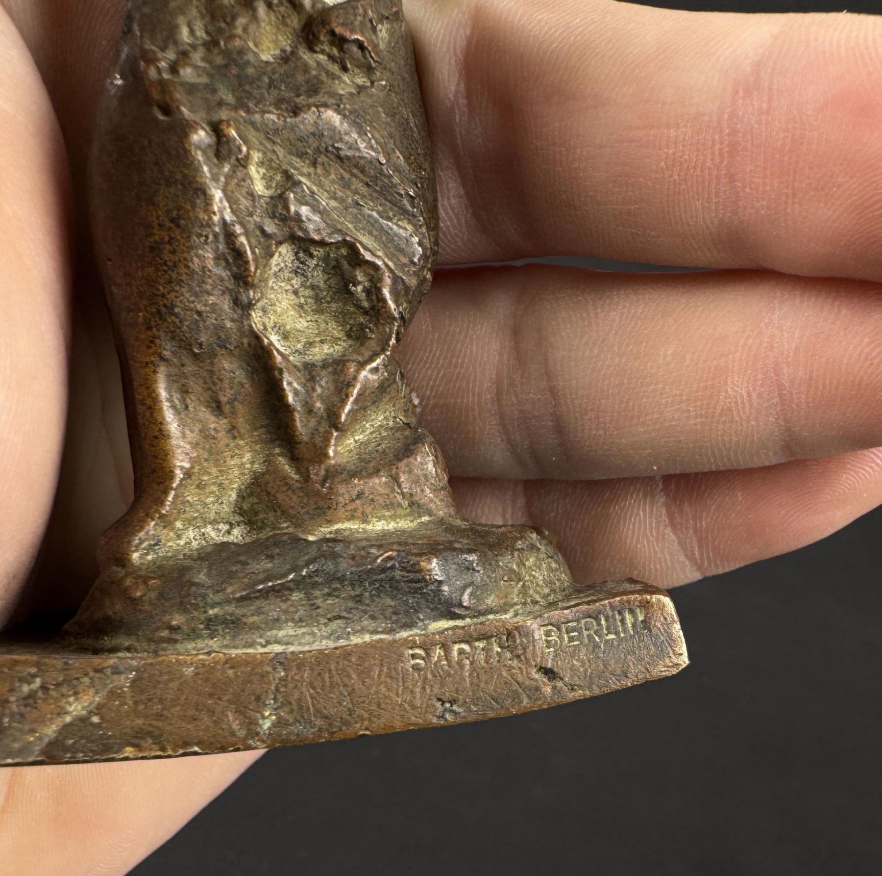 Title is Small Roman Figure. 6 1/2" by 2" by 1 3/4". Rolf Szymanski (1928 - 2013) was active/lived in Germany. Rolf Szymanski is known for Painting and sculpture. Rolf Szymanski is a German sculptor who was trained at the Kunstgewerbeschule Leipzig and the Hochschule für Bildende Künste in Berlin. He participated in the Documenta III in Kassel in 1964 and was a professor at the Hochschule der Künste Berlin from 1986 to 1996. He has had numerous solo and group exhibitions both in Germany and abroad, and many of his works can be found in public spaces in Germany.