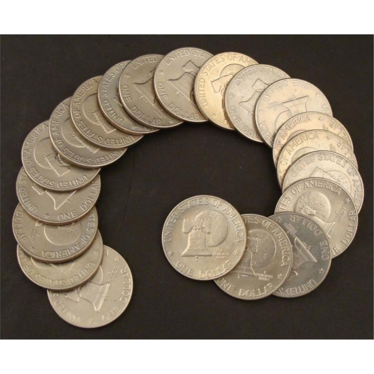 Here is a roll of 20 uncirculated commemorative 1976 Eisenhower Dollar coins. *