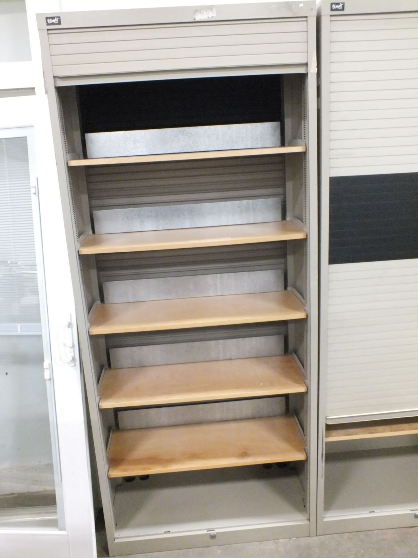 Roll Door Storage Cabinet, 36"w 18 1/2"d 84"h...used