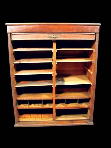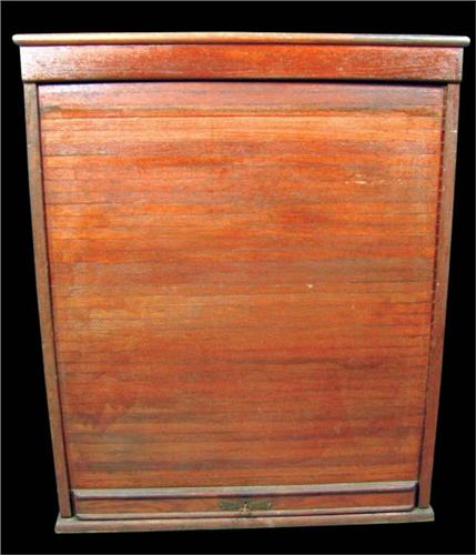 Roll Front File Cabinet. Tambour Front Cabinet. Good original condition. 29 X 36 X 13 1/2 inches.