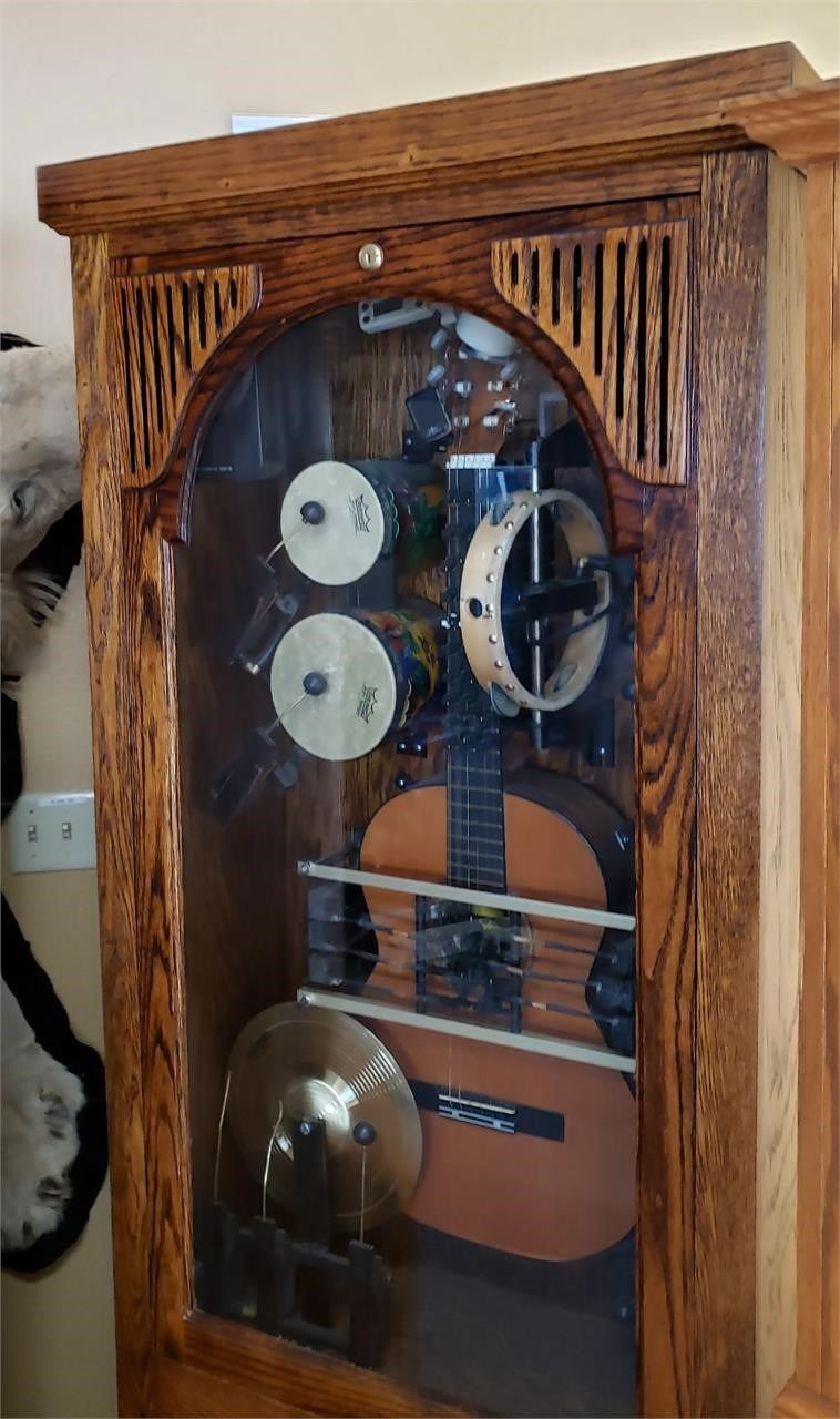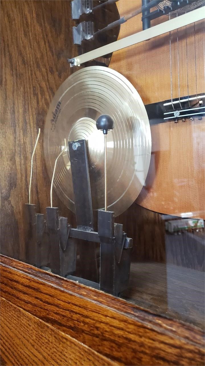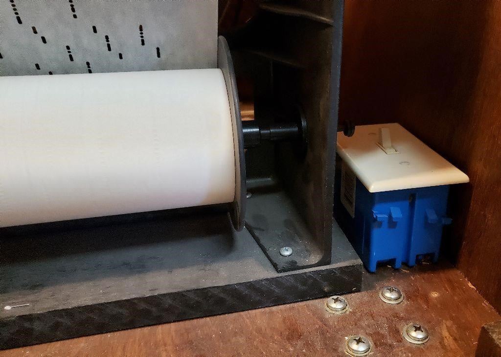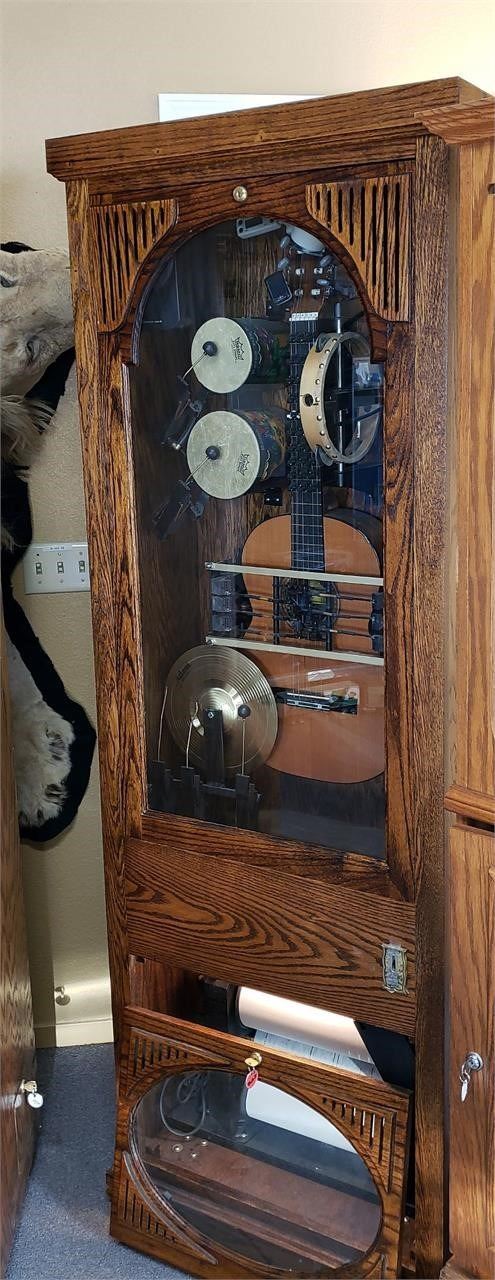 Plays and Lights up - Does not stop playing unless power is shutoff manually. Made by Ragtime Automated Music.