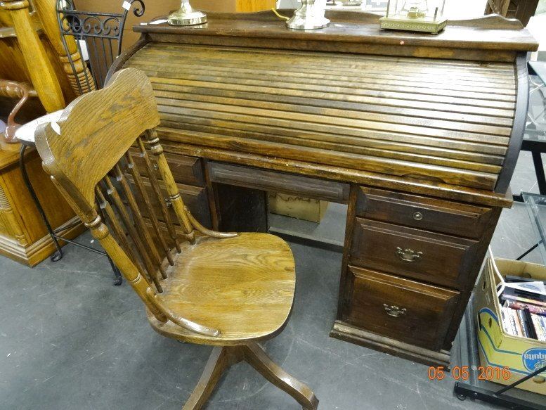 Roll Top Desk - Pine- Distressed (Oak Chair)