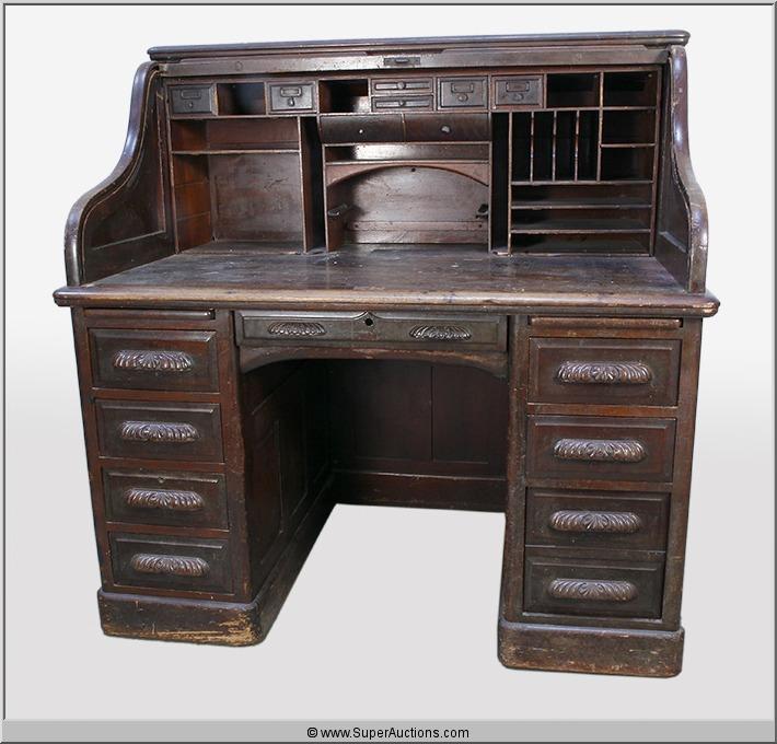 Brown Wood Roll Top Desk