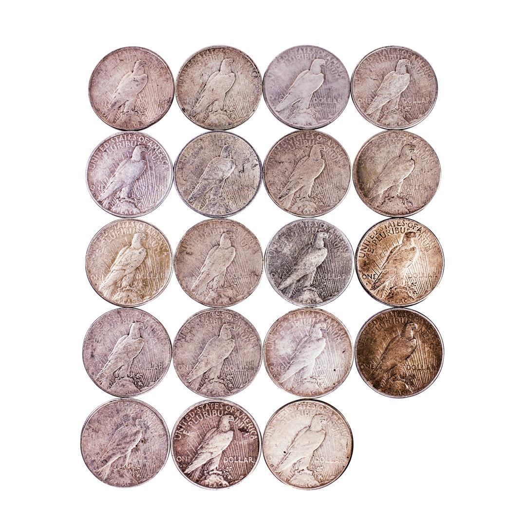 One Roll of (19) 1934-S $1 Peace Silver Dollar Coins Circulated.