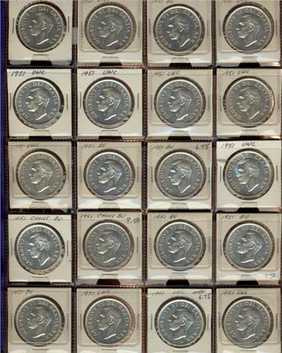 Roll of 1951 Silver dollar; All MS60 or better. Lot of 20 pieces.