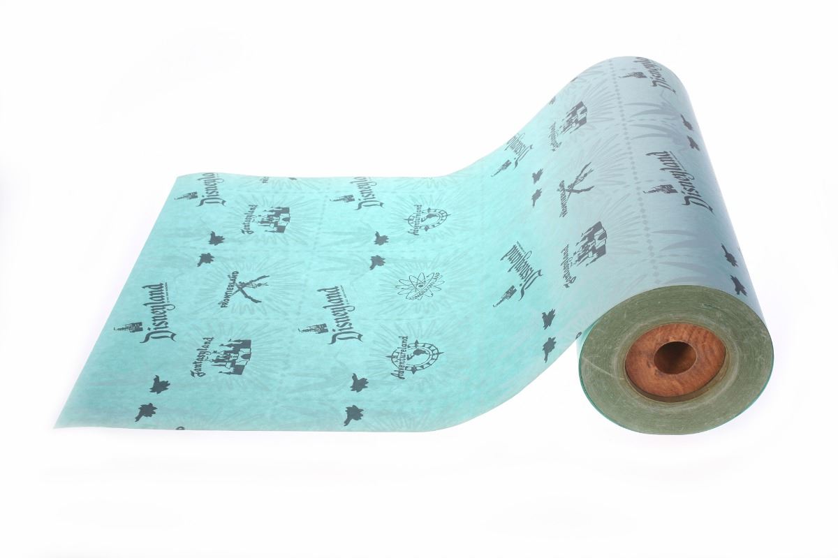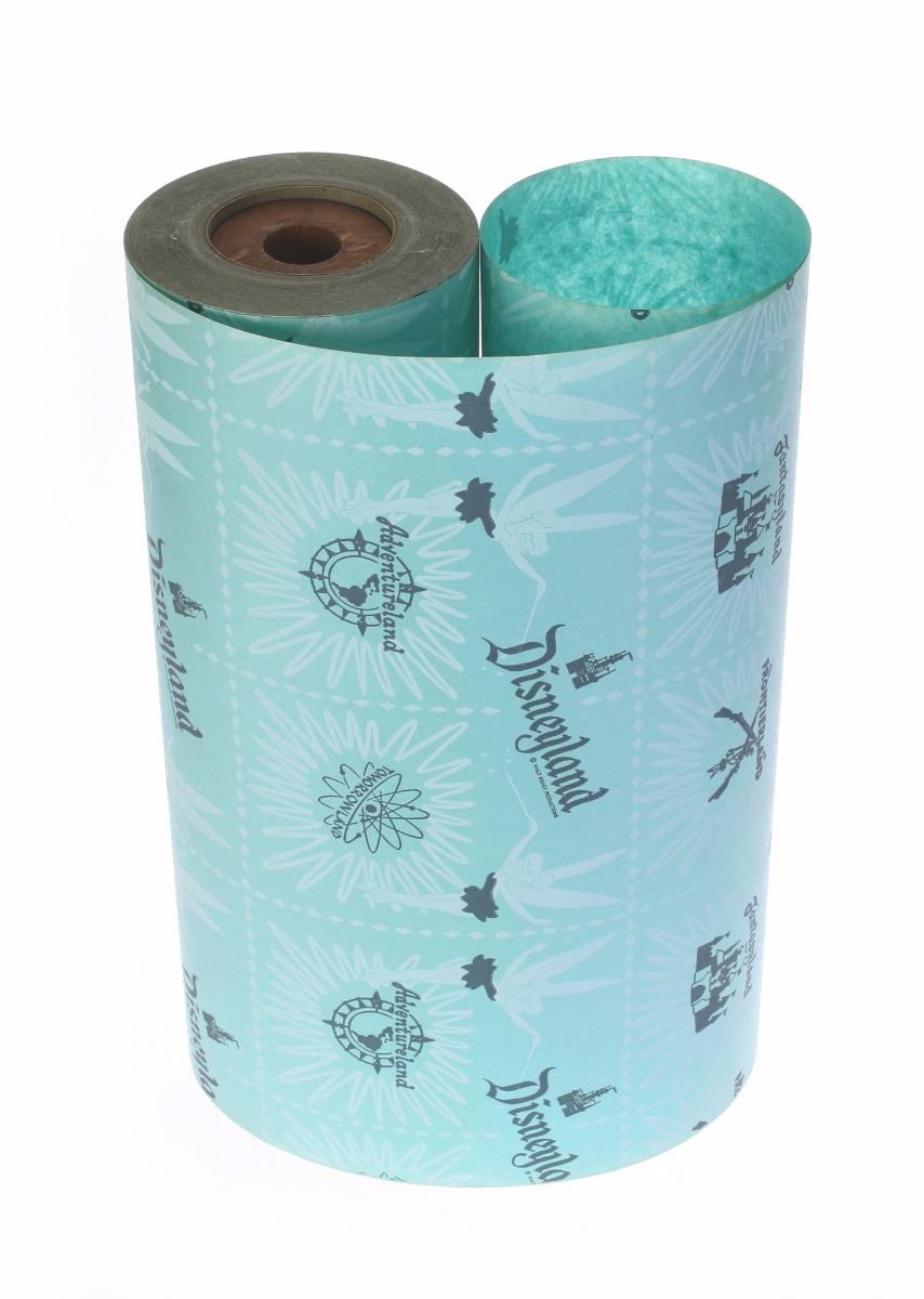 (Disneyland, 1955) Incredibly rare roll of unused Disneyland wrapping paper. This paper was used by concessionaires to wrap and bag sold merchandise during the early years of the park. Designed by Imagineers and artists at the studio, the imagery on this paper is so iconic of the park, that it was used again during the park's 55th anniversary celebration. It is almost unimaginable that an actual roll of this rare paper would still exist. The 15" long and 5" in diameter roll comes from the estate of Henry Fenenbock, owner of several shops on Main Street and in Adventureland from 1955-1960. When his leases expired in 1960, this roll was taken home and has been with the family until now. An incredible Disneyland artifact. In very good condition.