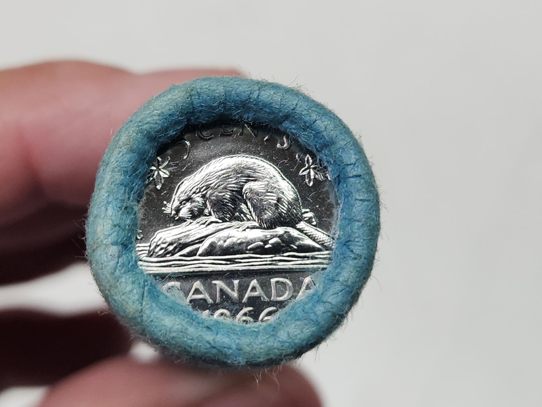 Roll of 1966 Canadian 5 cent coins