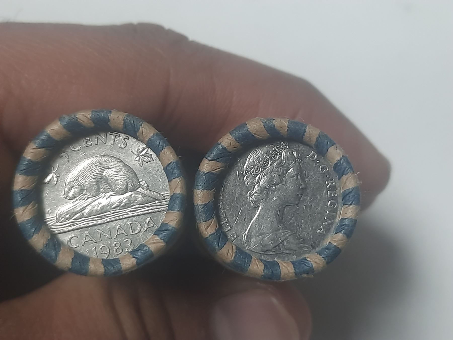 Roll of 1983 and 1974 Canada 5 Cents Coin.