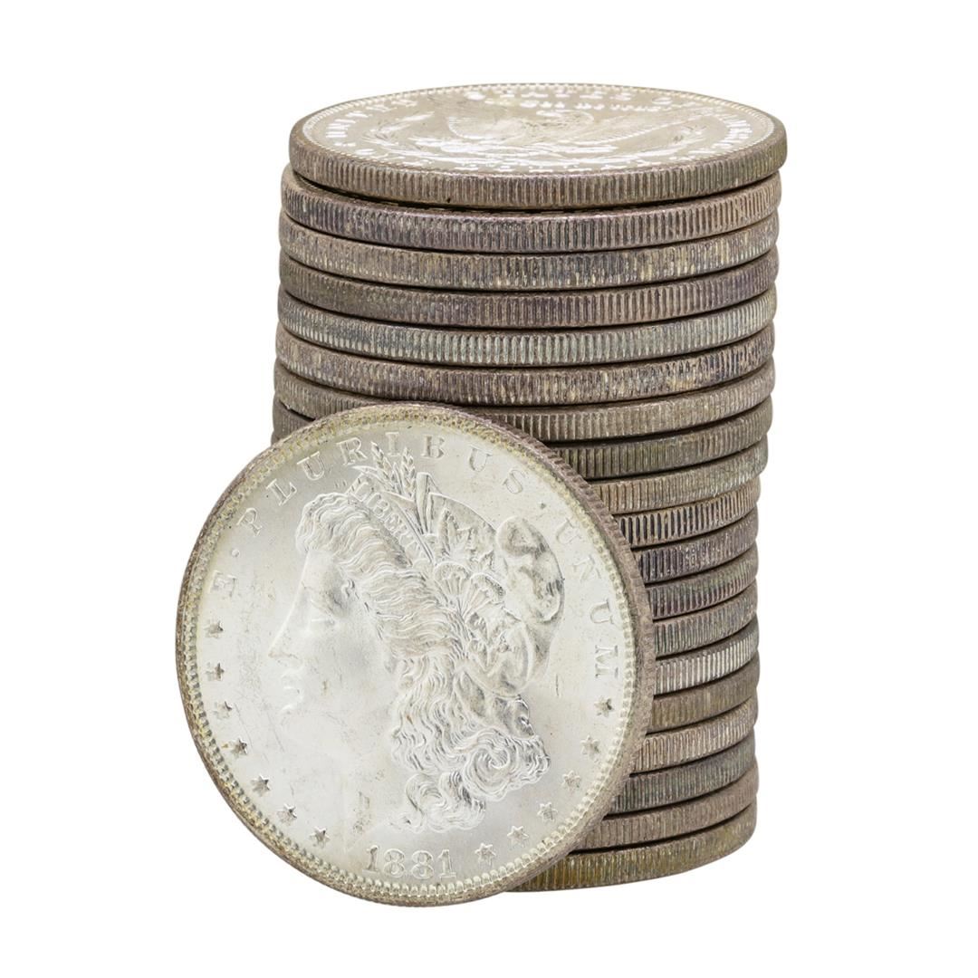 One Roll of (20) 1881-S $1 Brilliant Uncirculated Morgan Silver Dollar Coins.