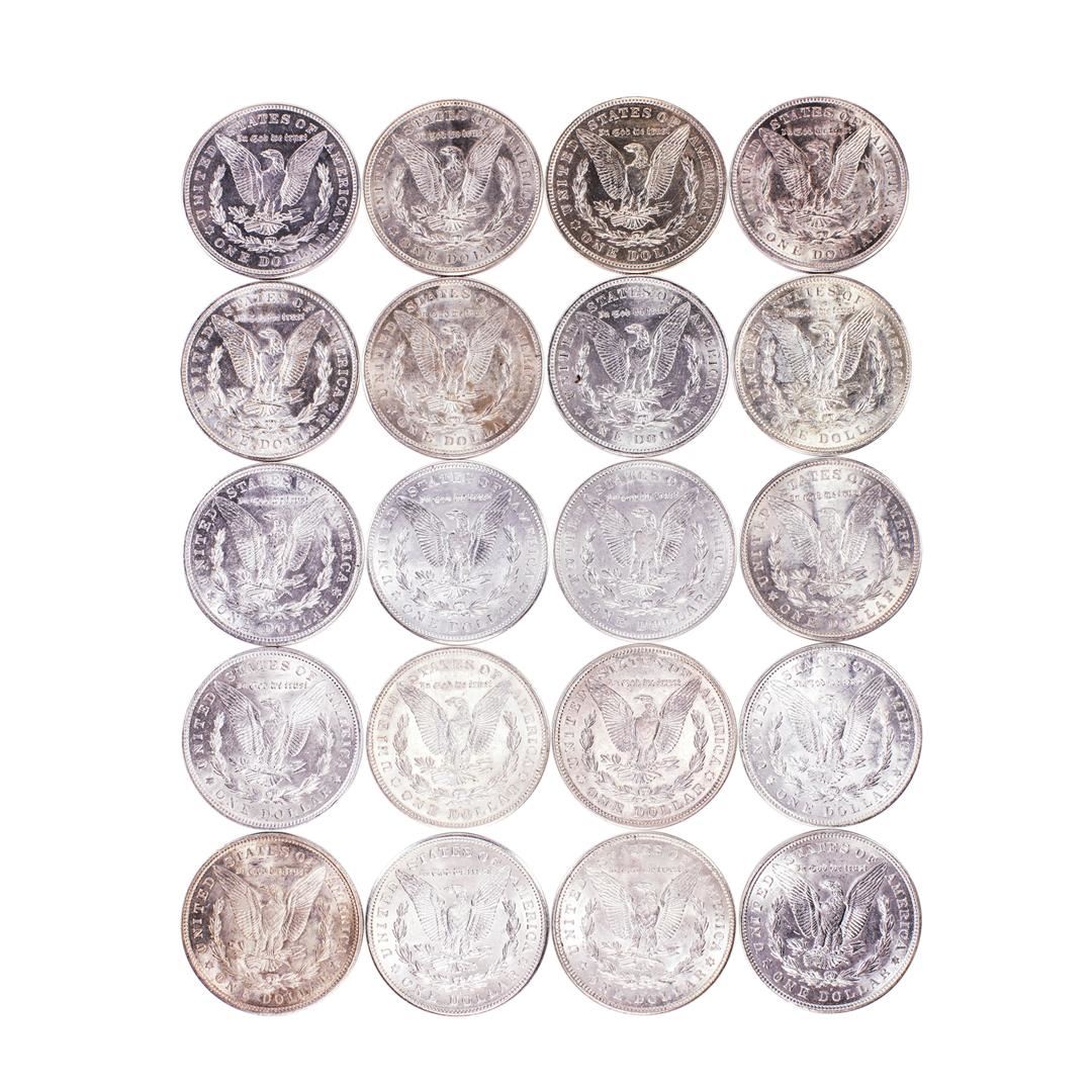 One Roll of (20) 1921-D $1 Morgan Silver Dollar Coins.