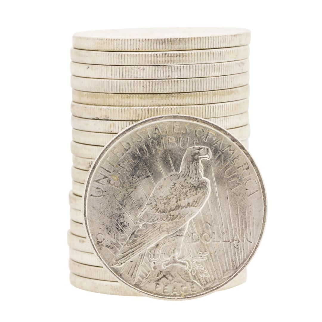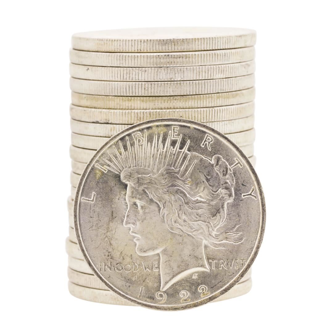 Roll of (20) 1922 $1 Brilliant Uncirculated Peace Silver Dollar Coins