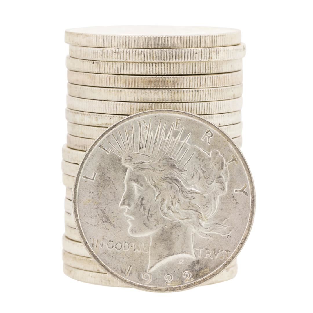 Roll of (20) 1922 $1 Brilliant Uncirculated Peace Silver Dollar Coins