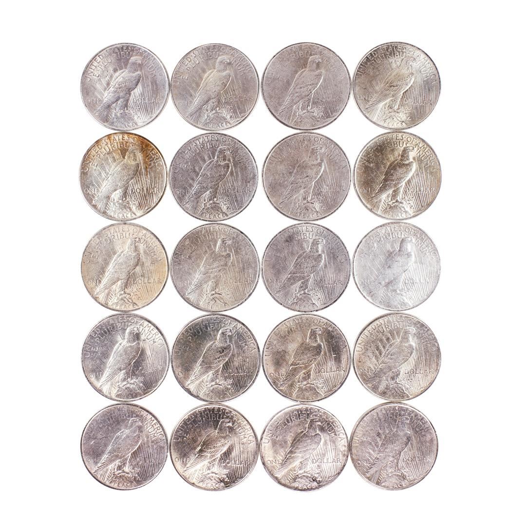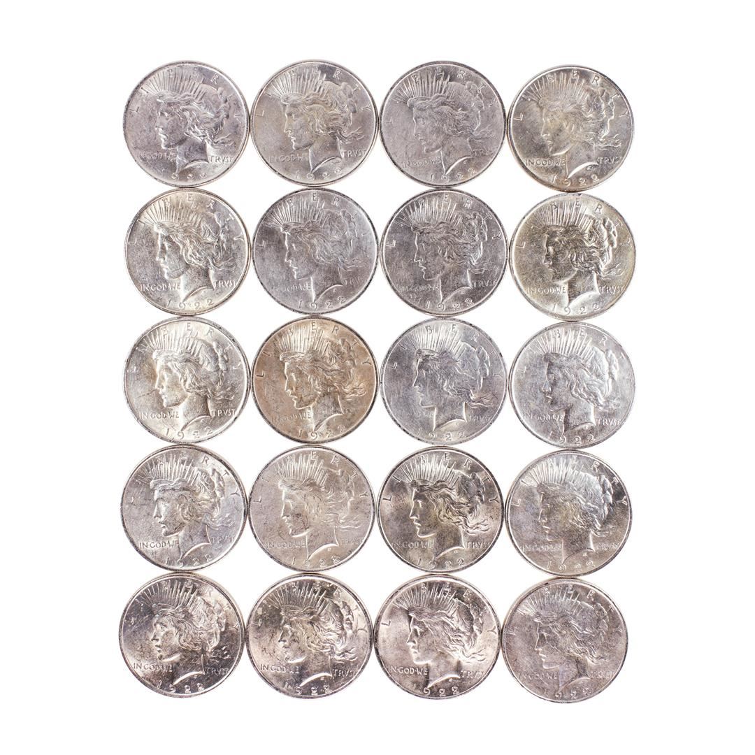 One Roll of (20) 1922 $1 Peace Silver Dollar Coins.