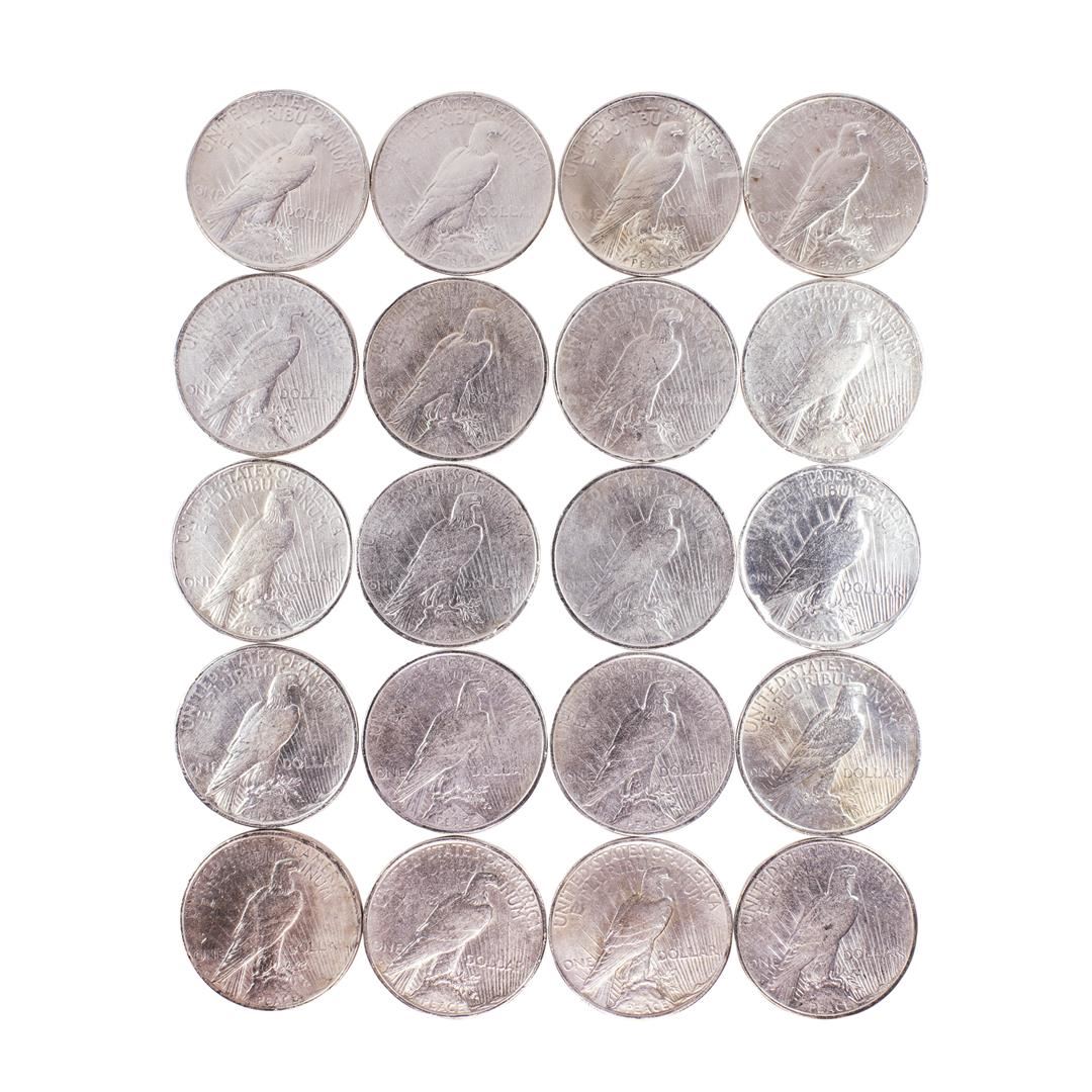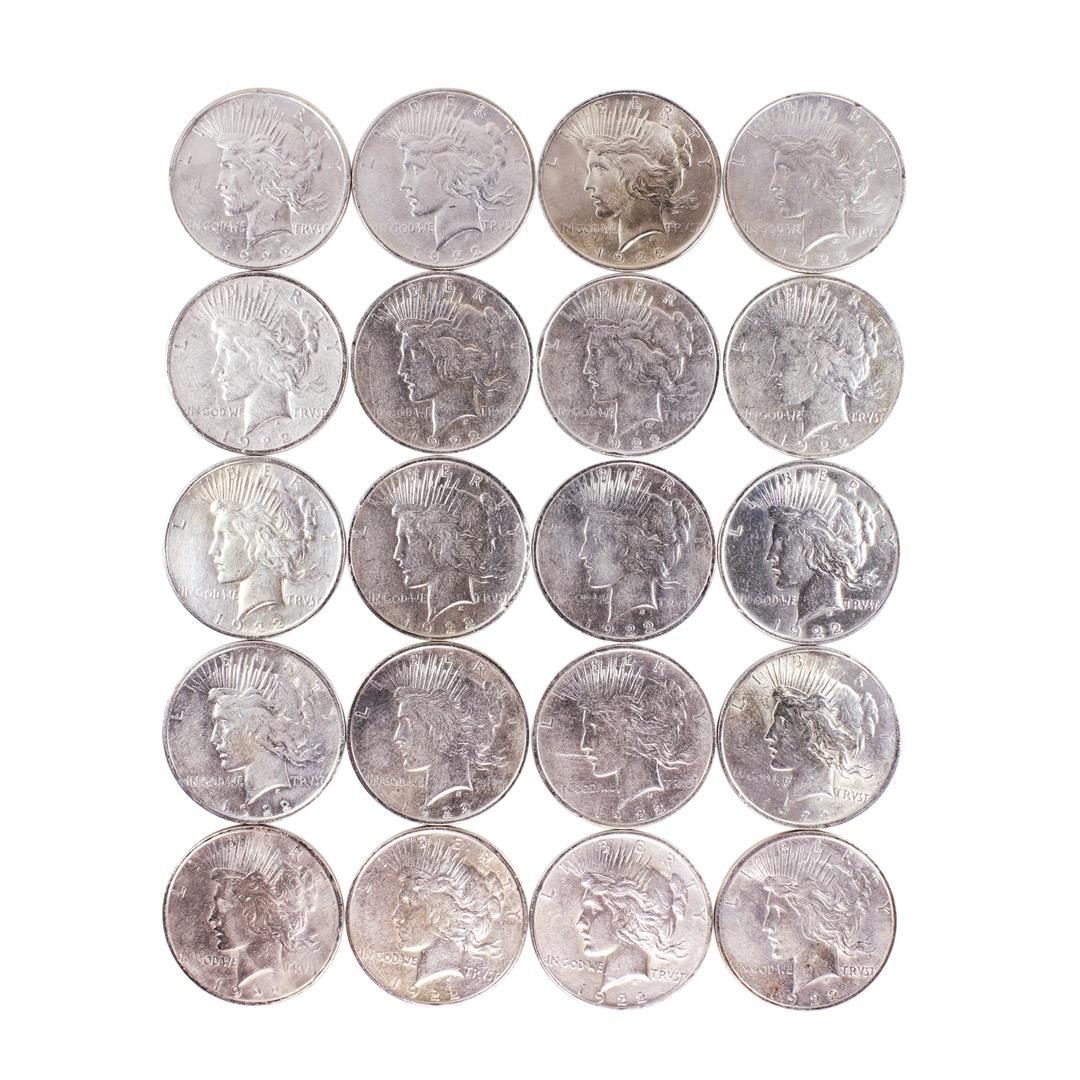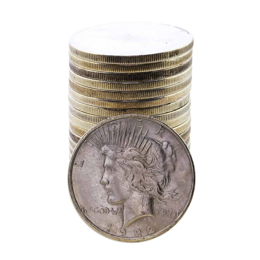 One Roll of (20) 1922-D $1 Peace Silver Dollar Coins.