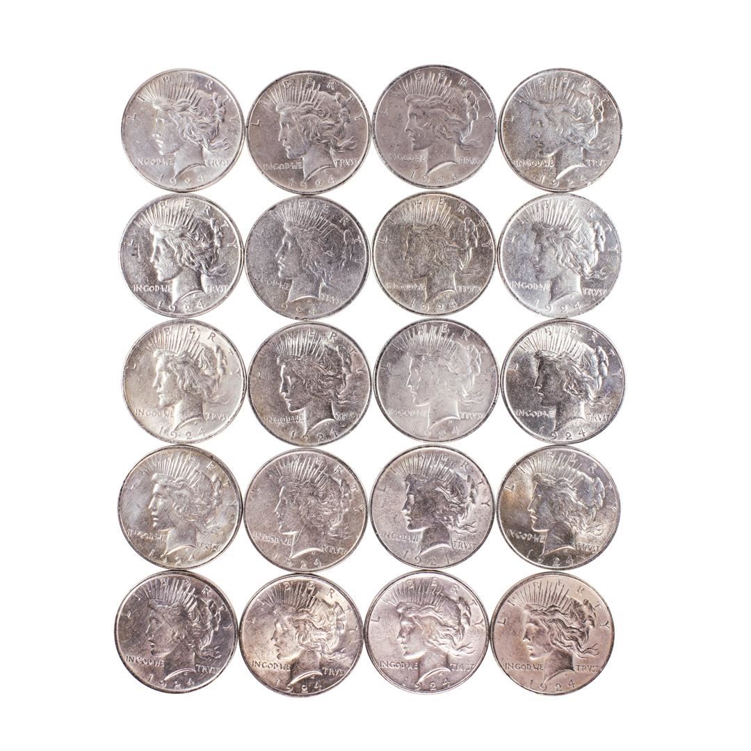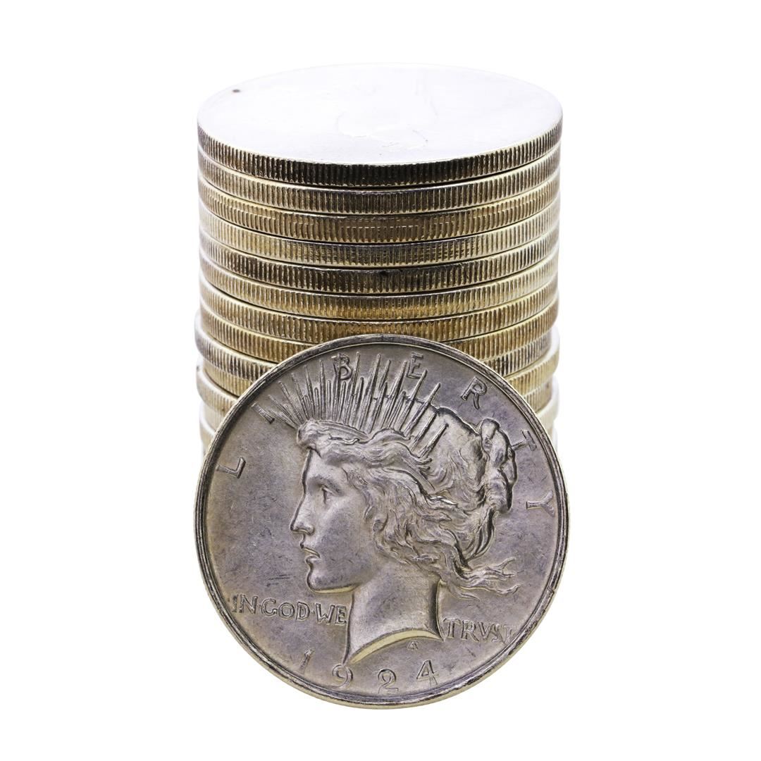 One Roll of (20) 1924 $1 Peace Silver Dollar Coins.