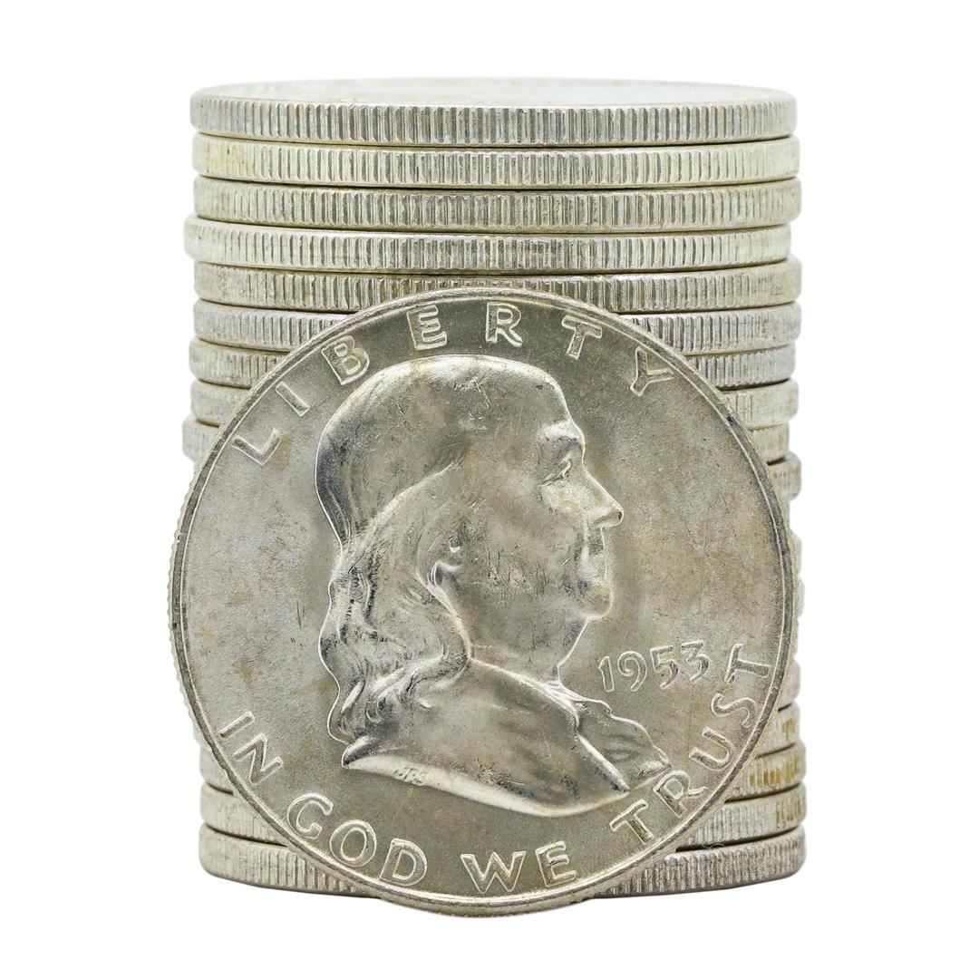 Roll of (20) 1953-D Brilliant Uncirculated Franklin Half Dollar Coins