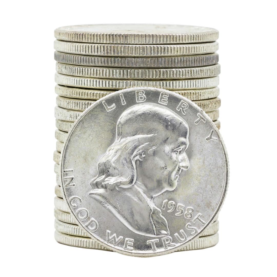 Roll of (20) 1958 Brilliant Uncirculated Franklin Half Dollar Coins