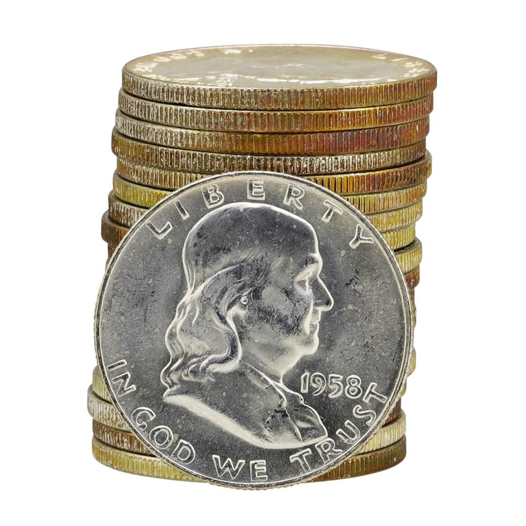 One Roll of (20) 1958 Brilliant Uncirculated Franklin Half Dollars.