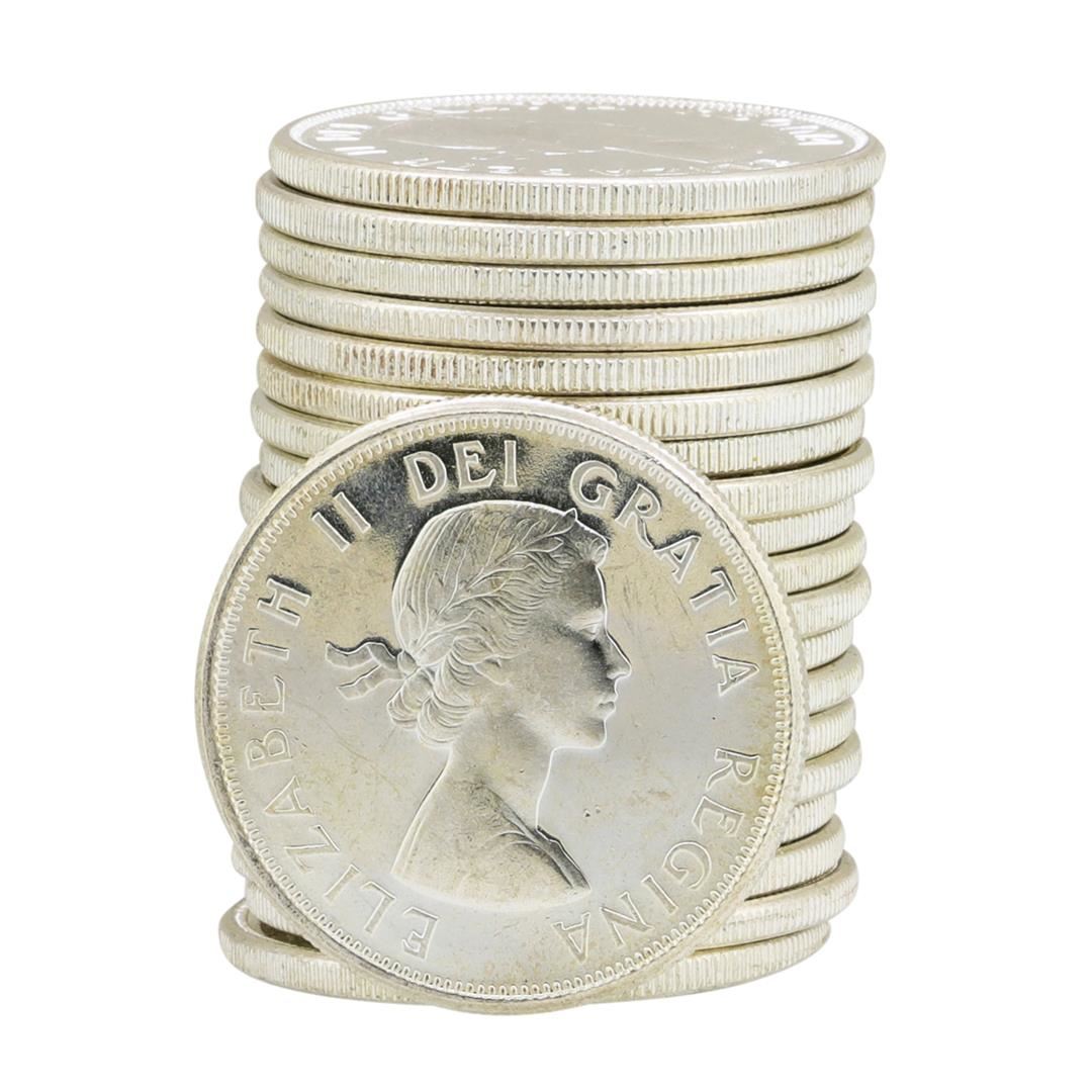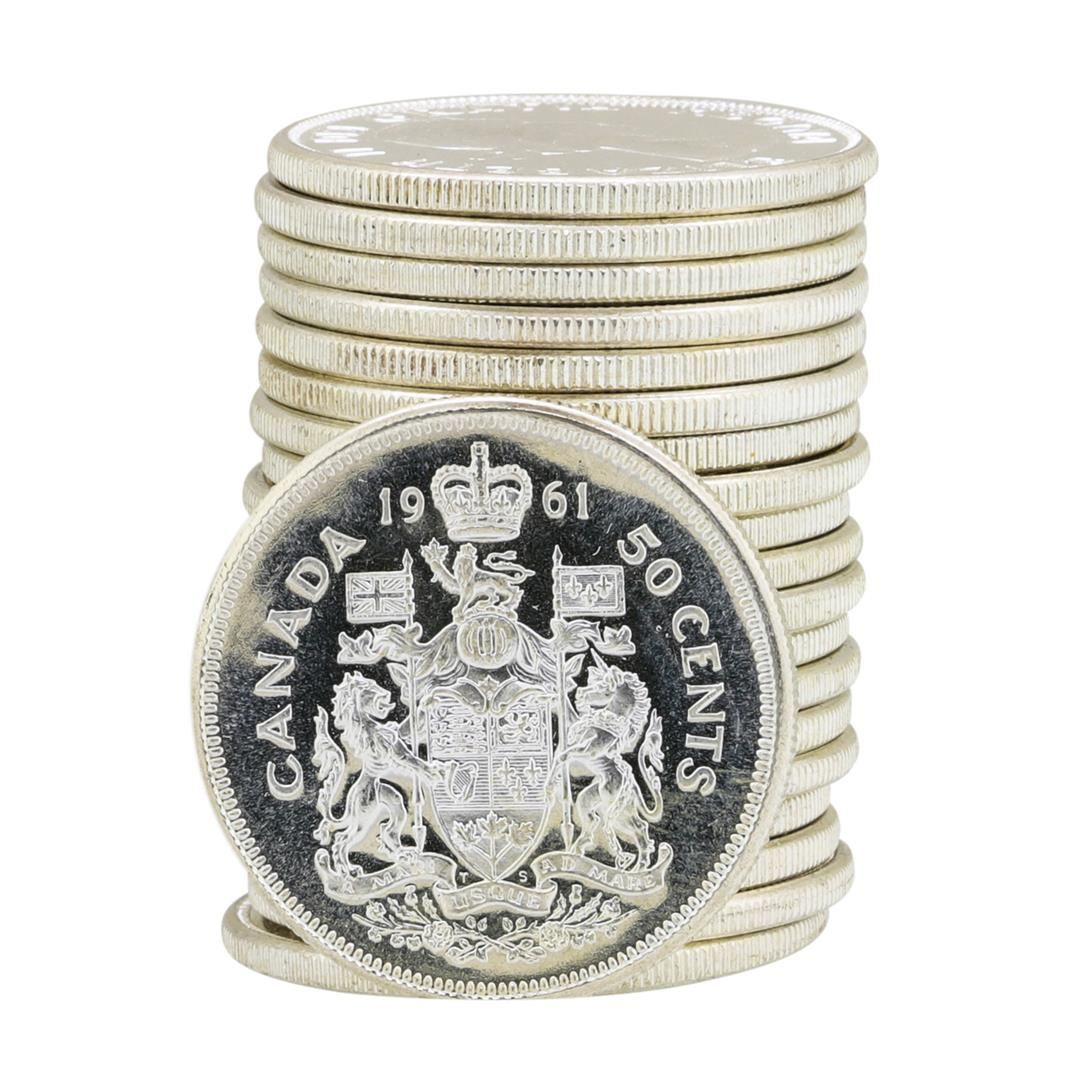 One Roll of (20) 1961 Brilliant Uncirculated Canadian Half Dollars.