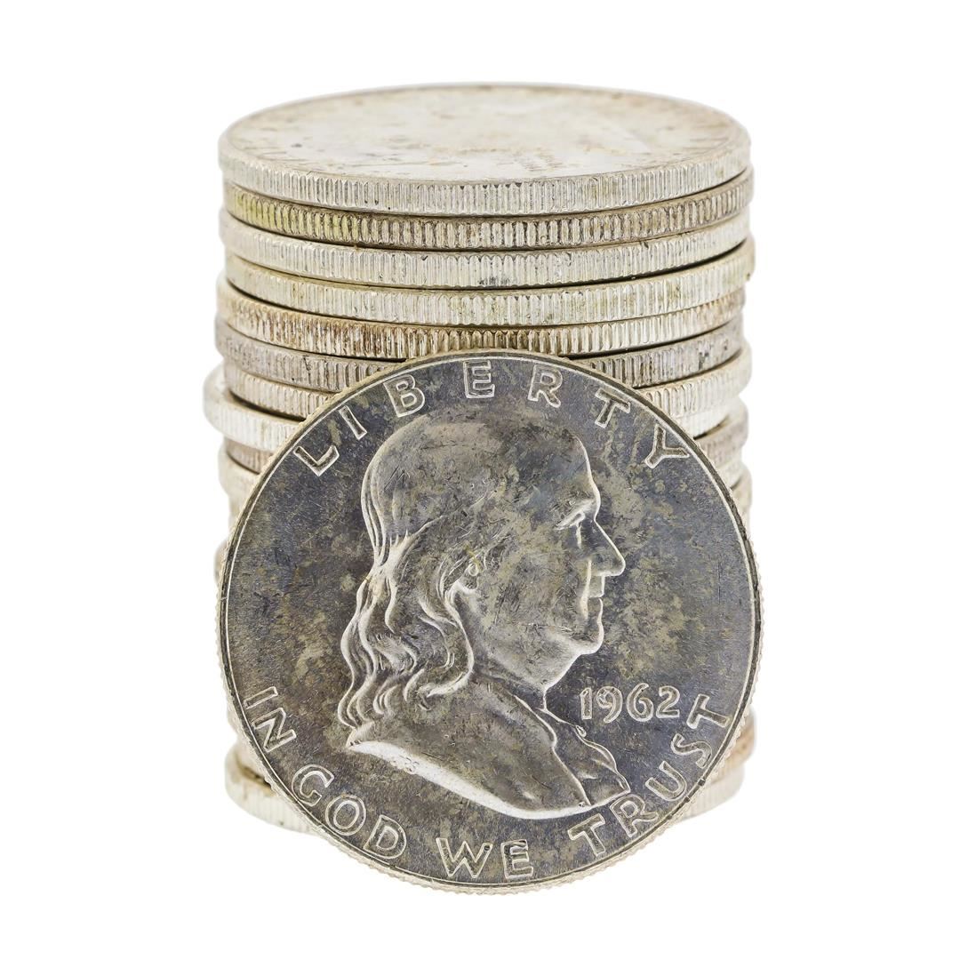 One Roll of (20) 1962-D Brilliant Uncirculated Franklin Half Dollar Coins.