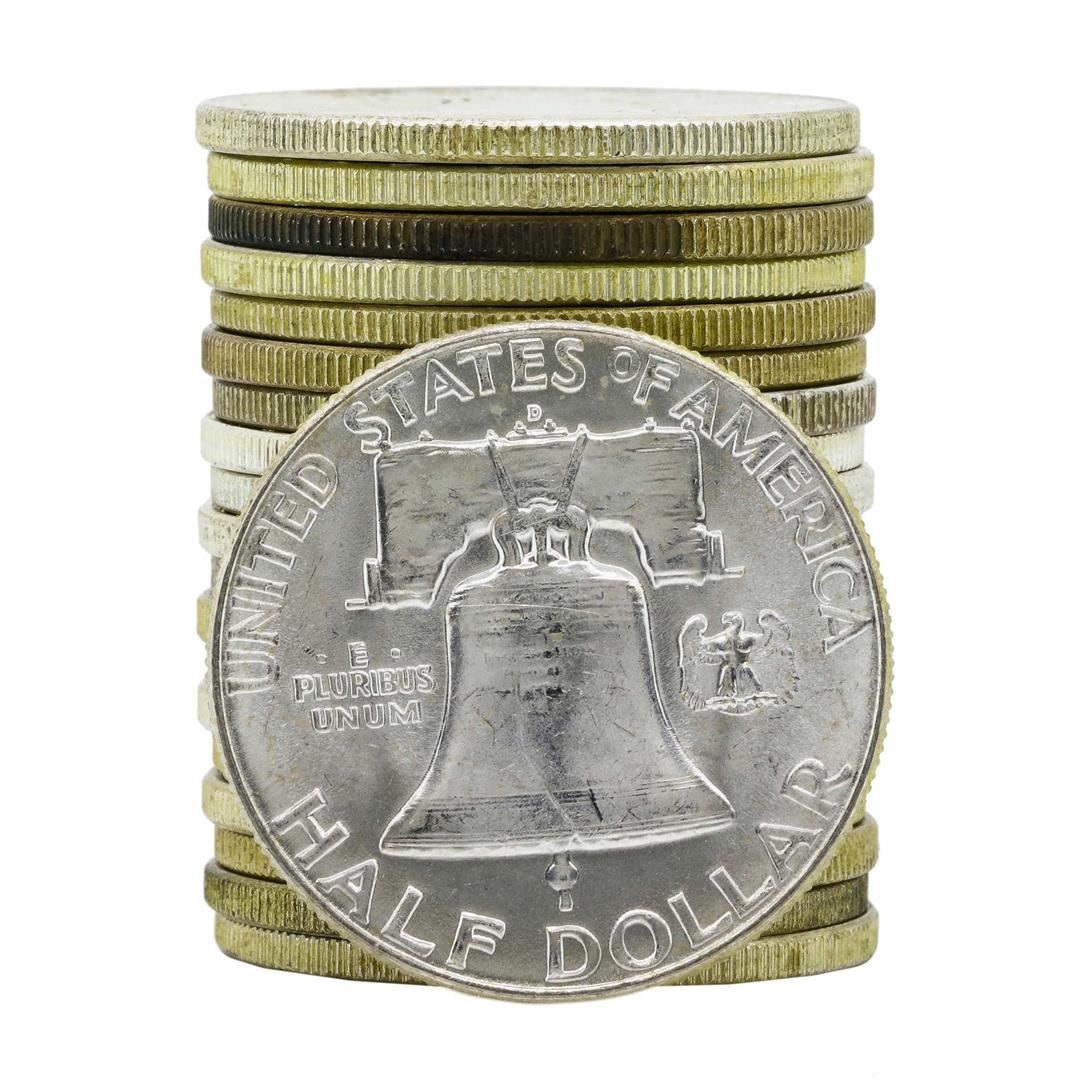 One Roll of (20) 1962-D Brilliant Uncirculated Franklin Half Dollar Coins.