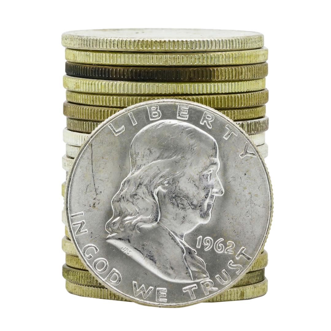 One Roll of (20) 1962-D Brilliant Uncirculated Franklin Half Dollar Coins.