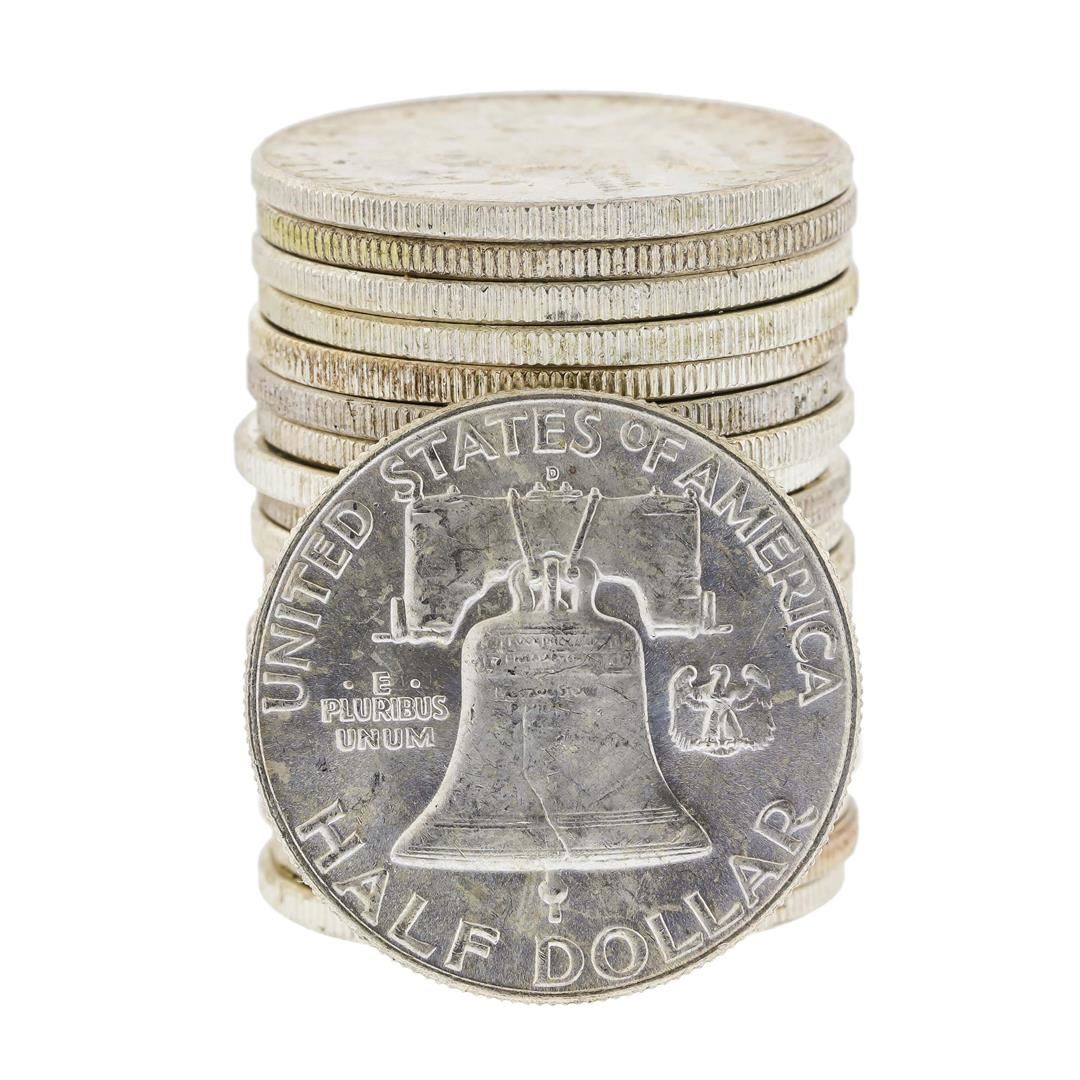 One Roll of (20) 1962-D Brilliant Uncirculated Franklin Half Dollar Coins.