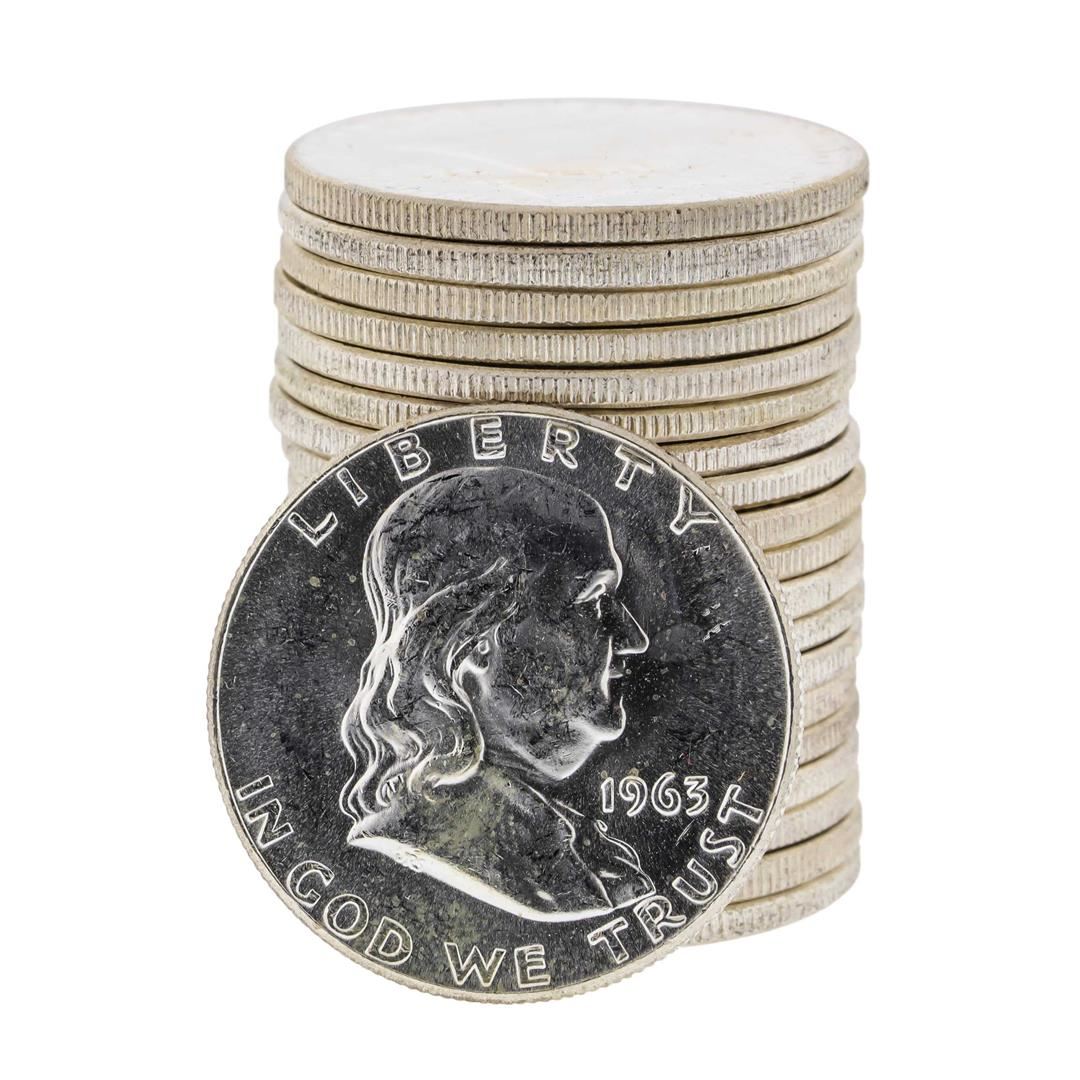 Roll of (20) 1963 Brilliant Uncirculated Franklin Half Dollar Coins