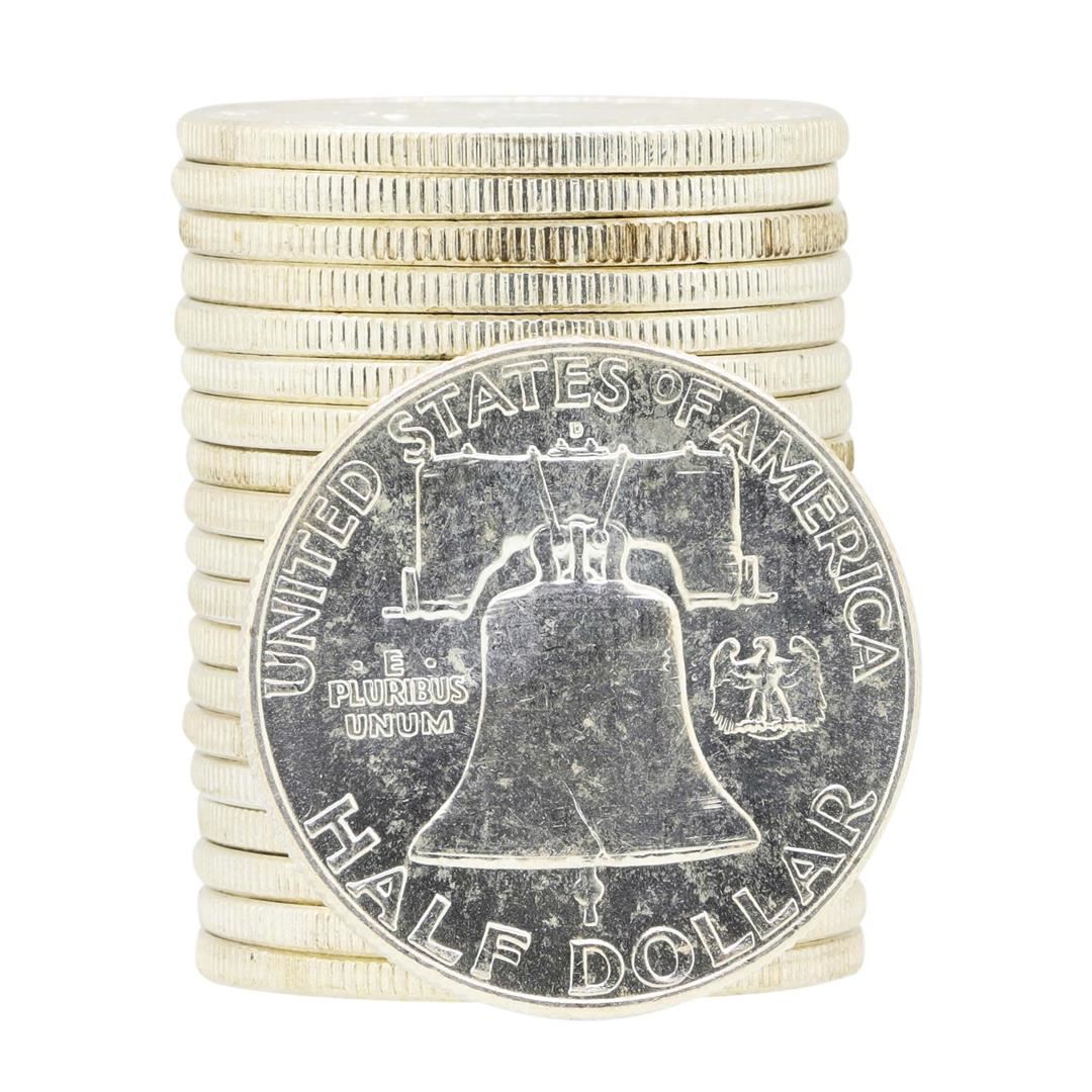 Roll of (20) 1963 Brilliant Uncirculated Franklin Half Dollar Silver Coins