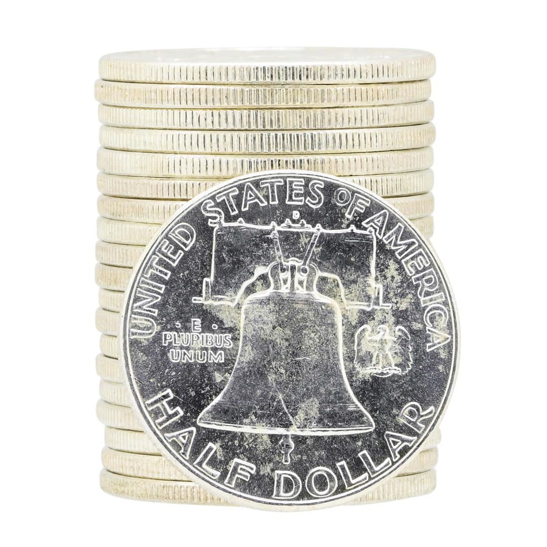 Roll of (20) 1963 Brilliant Uncirculated Franklin Half Dollar Silver Coins