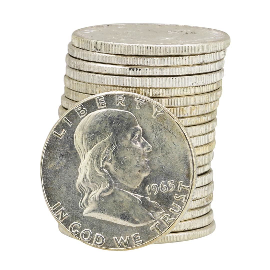 One Roll of (20) 1963 Brilliant Uncirculated Franklin Half Dollars.