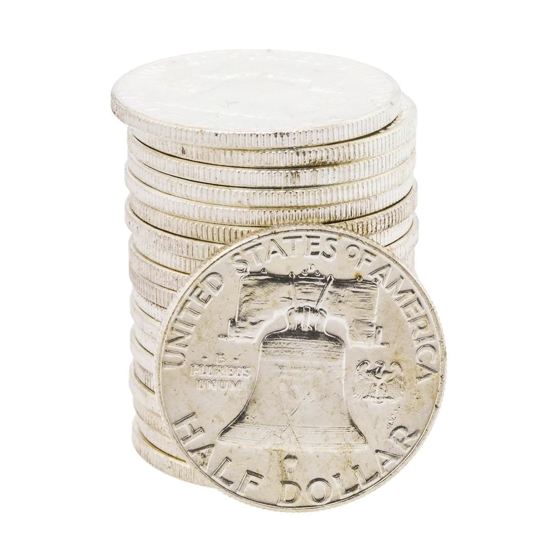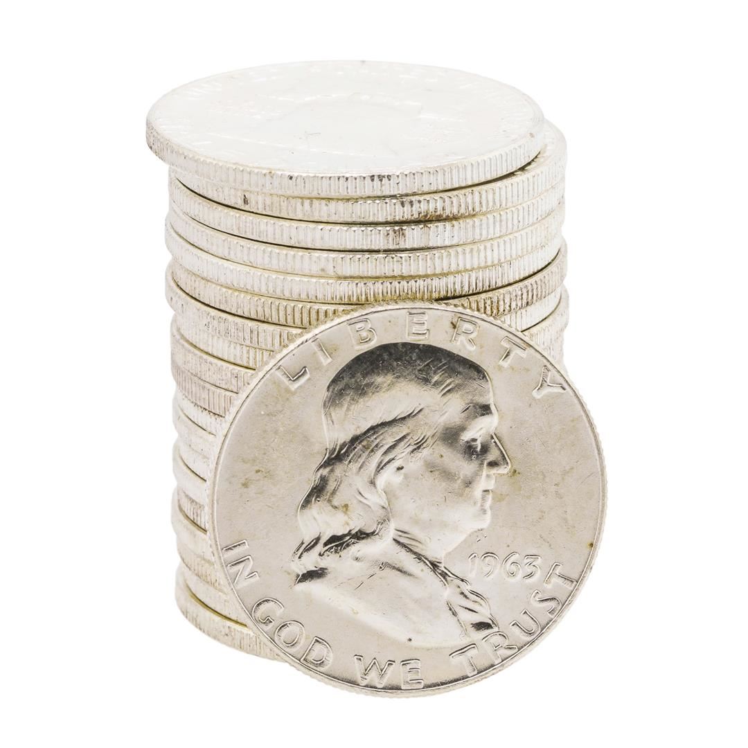 One Roll of (20) 1963-D Brilliant Uncirculated Franklin Half Dollar Coins.