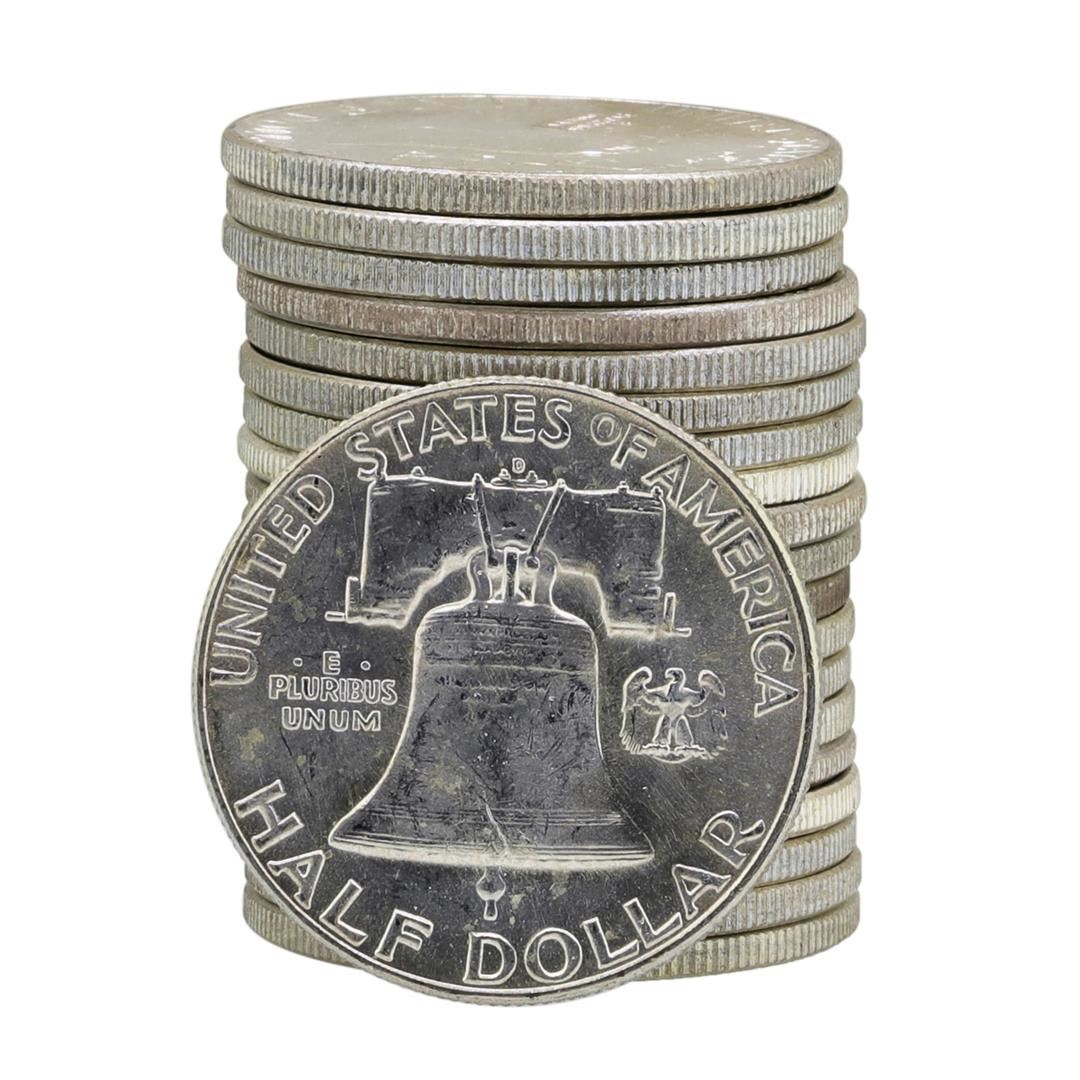 One Roll of (20) 1963-D Brilliant Uncirculated Franklin Half Dollars.