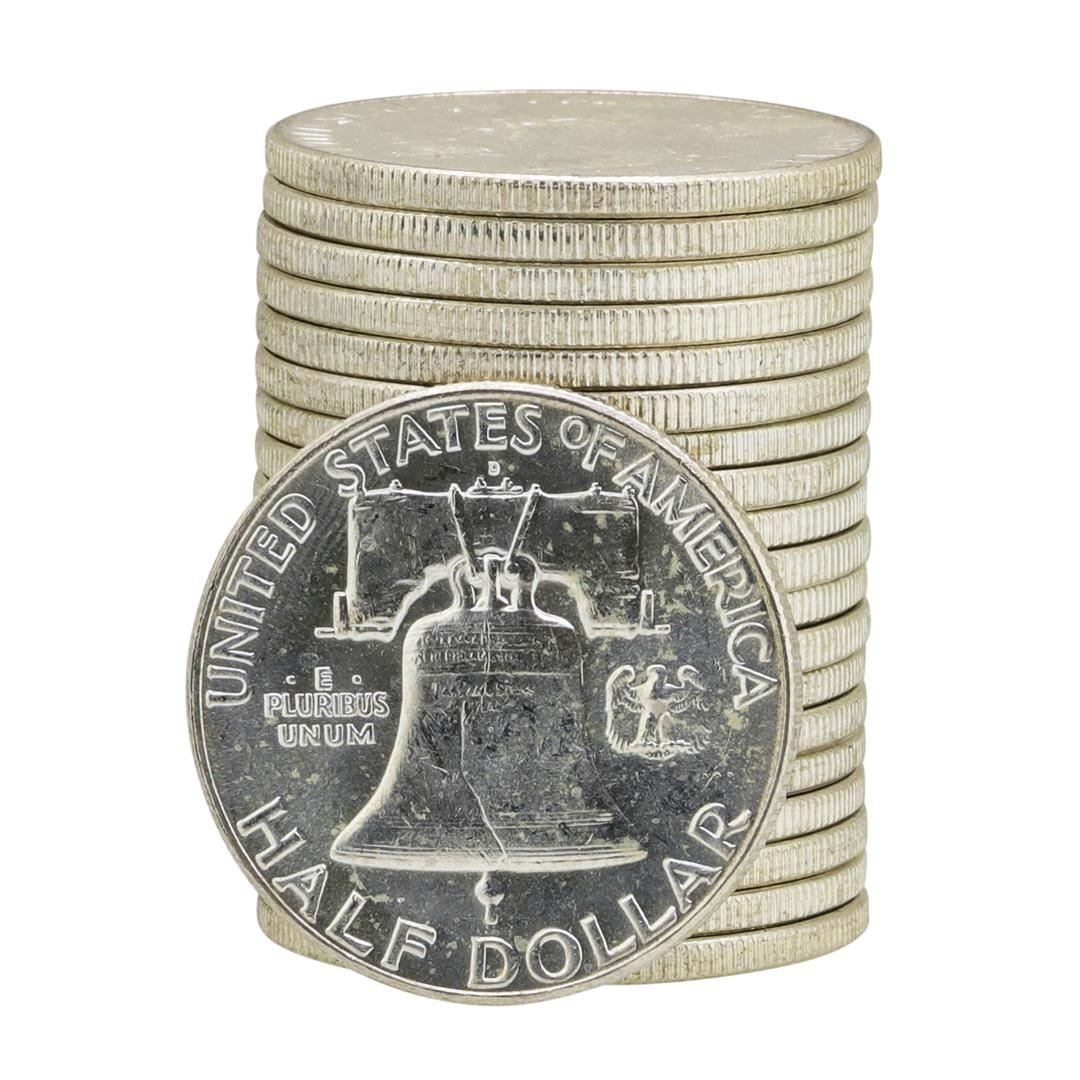 One Roll of (20) 1963-D Brilliant Uncirculated Franklin Half Dollars.