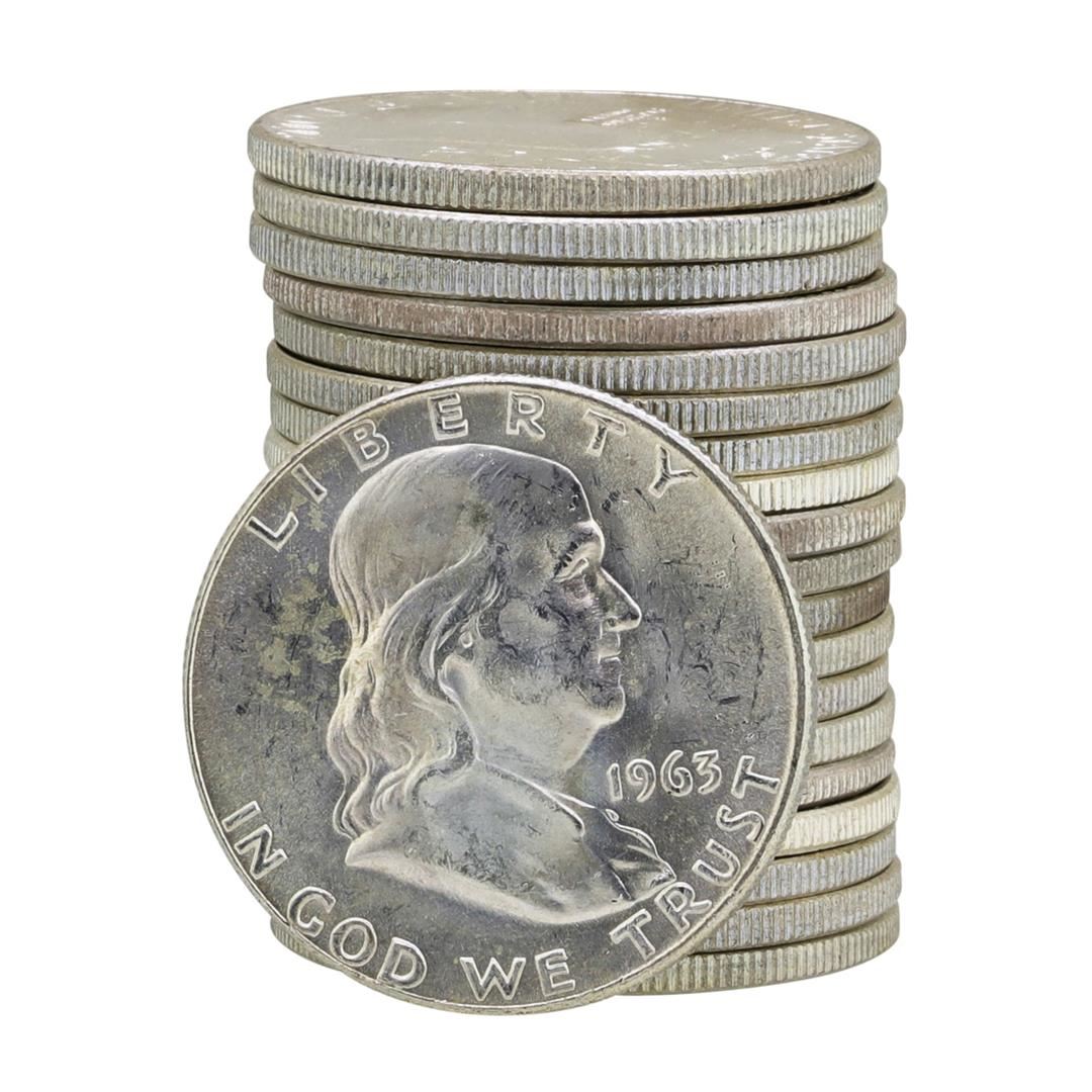 One Roll of (20) 1963-D Brilliant Uncirculated Franklin Half Dollars.