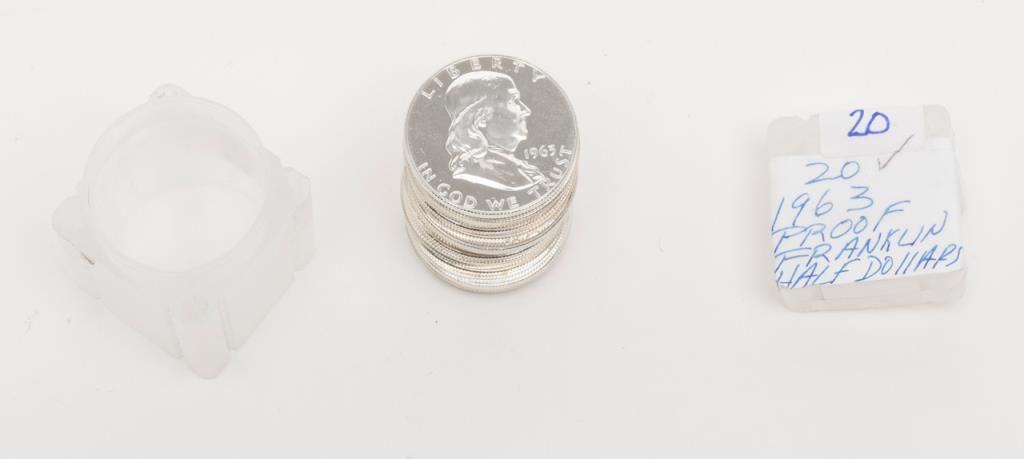 Roll of 20 1963 Franklin Half Dollars, un-graded but appear proof condition. Est.: $240-$380.